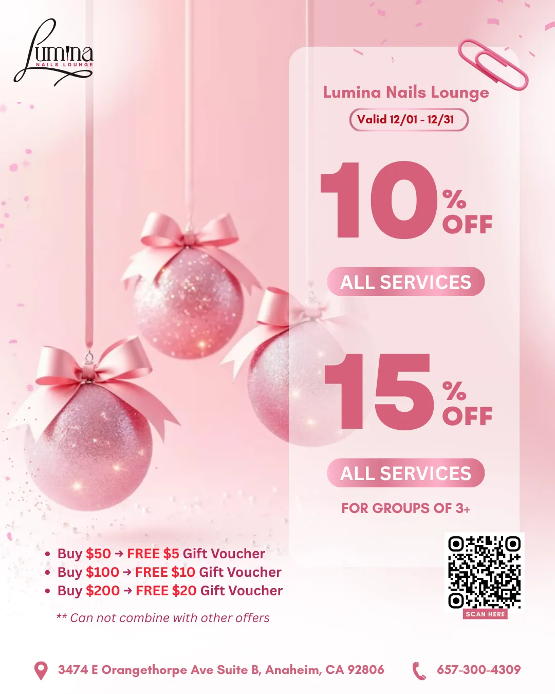 ππ Celebrate the holidays in style at Lumina Nails Lounge. Itβs the perfect time to indulge, refresh, and share the gift of beauty. π